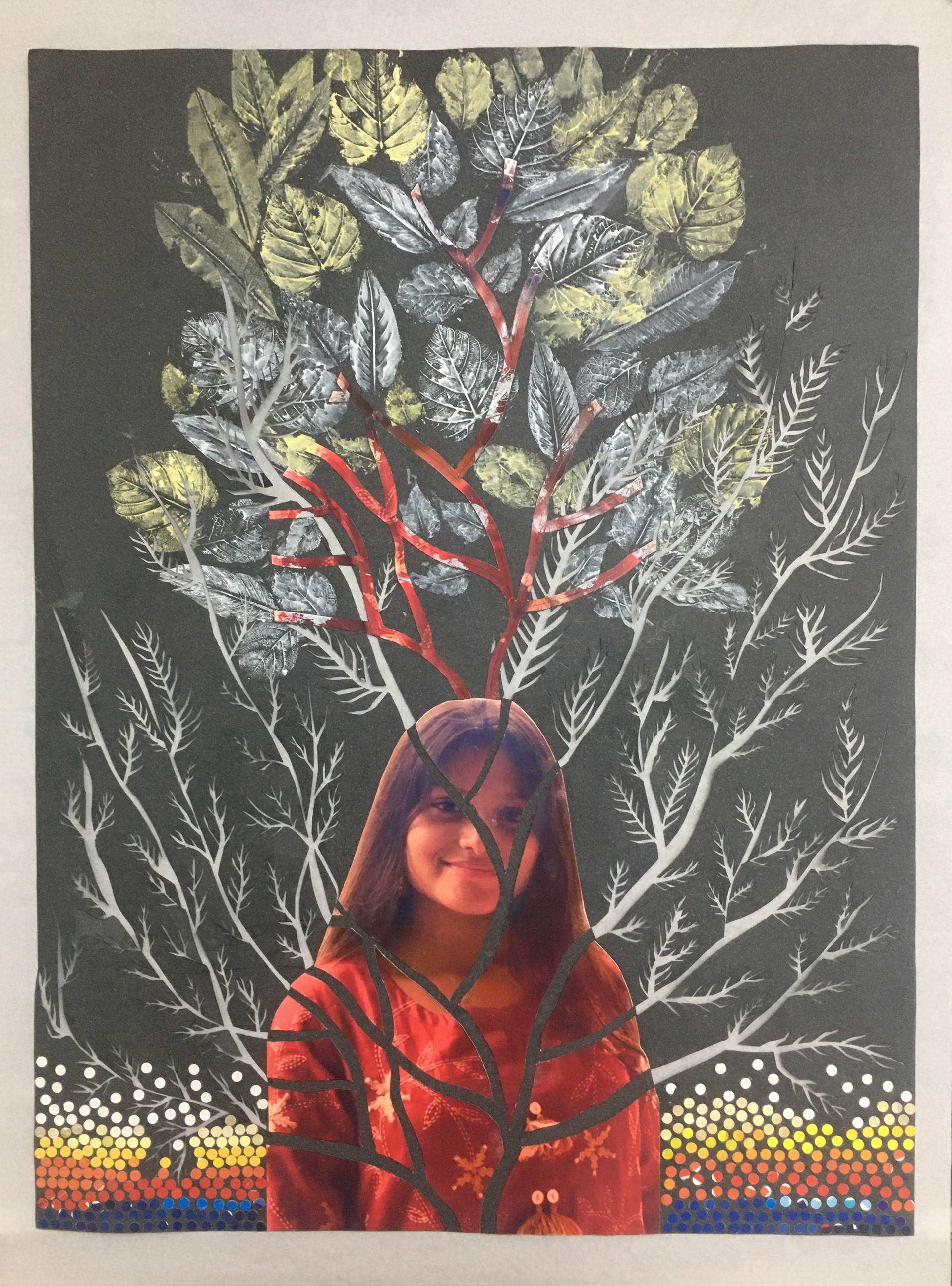 I was assigned a task in which I had to experiment and create a collage using a photo of my self-portrait. Since I love nature, so I employed trees as my backdrop. The tree on top of the image is alive, however the tree at the bottom is dried out, which symbolizes the capacity to develop and become stronger after a challenging time.