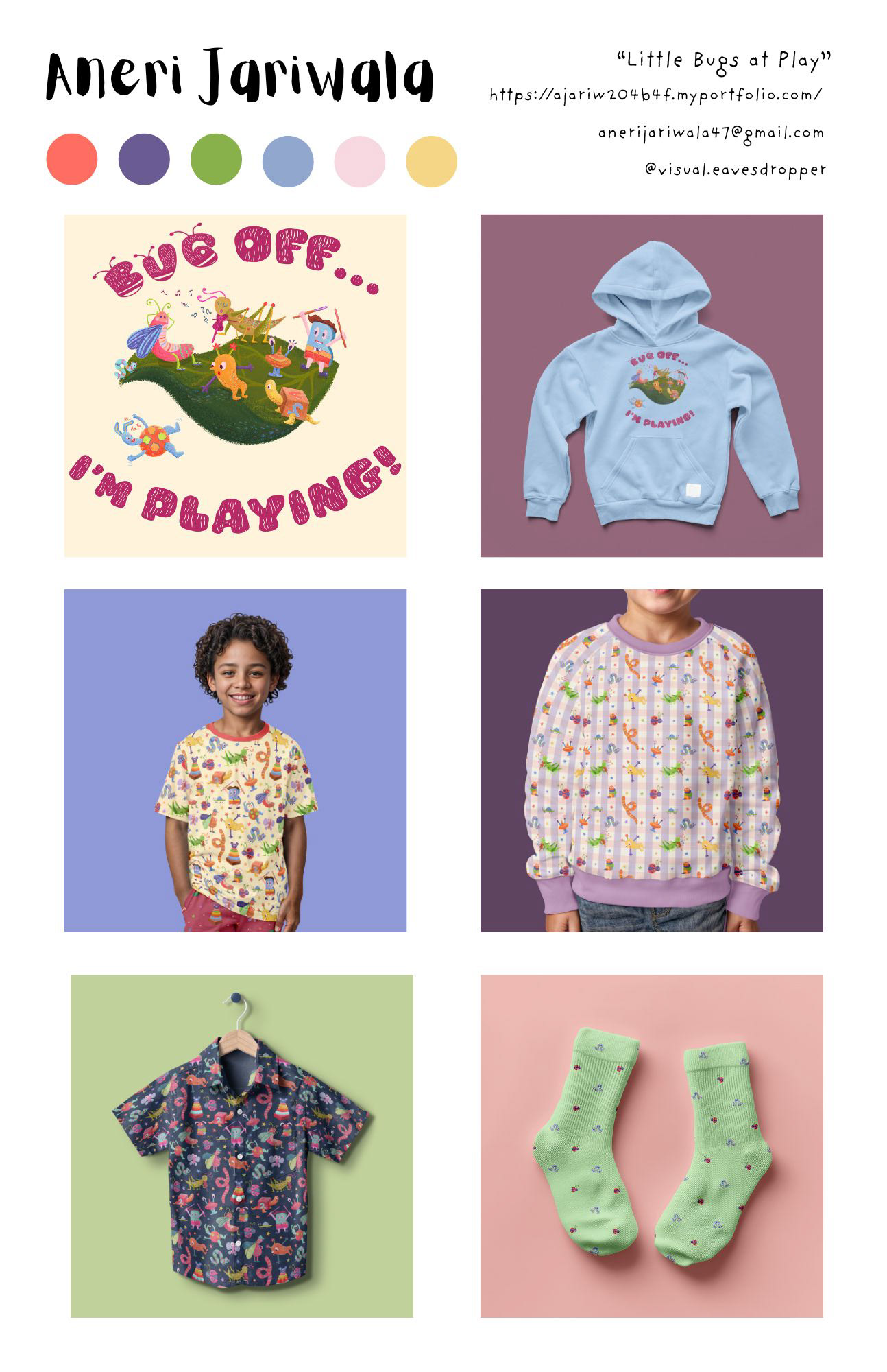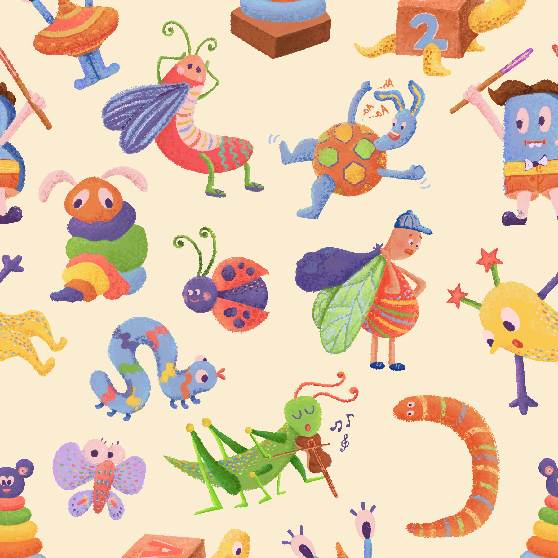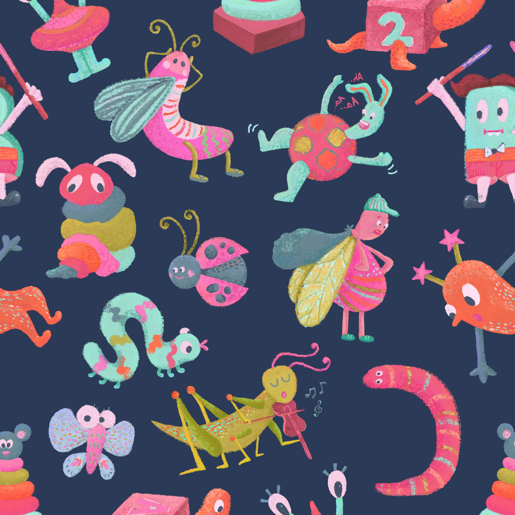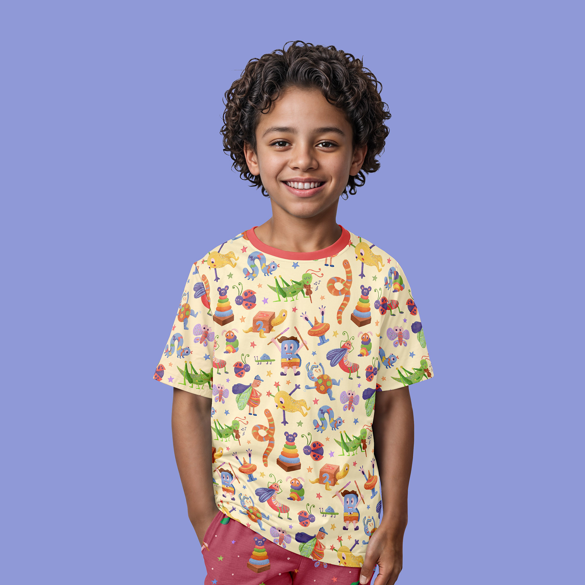 After exploring trend forecasts on WGSN, I noticed a growing shift toward playful, elongated characters. That insight led me to create a collection of whimsical bug motifs with a subtle yet lively color palette. The goal was to tap into the spirit of children’s imagination, letting each creature feel curious, expressive, and a little bit magical.