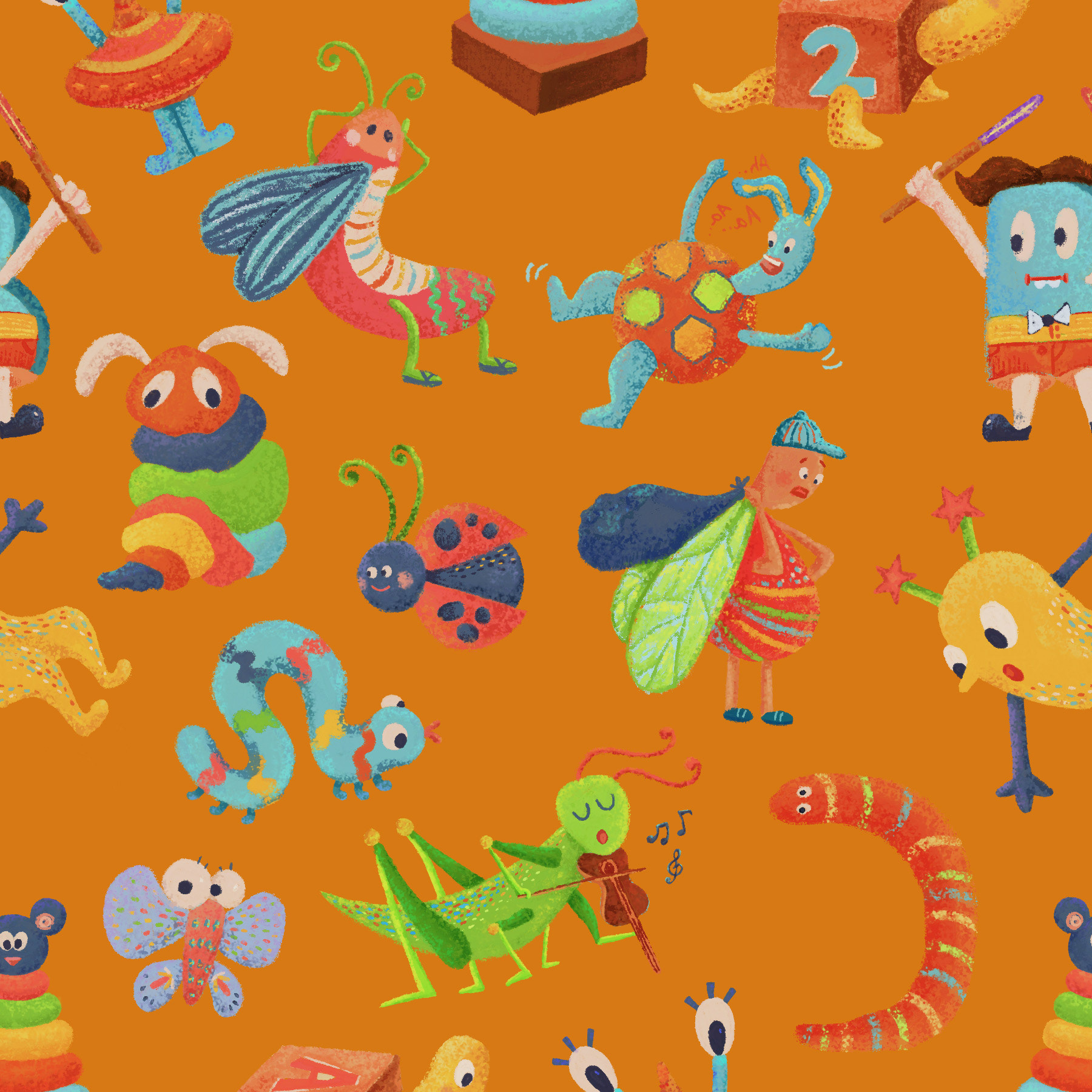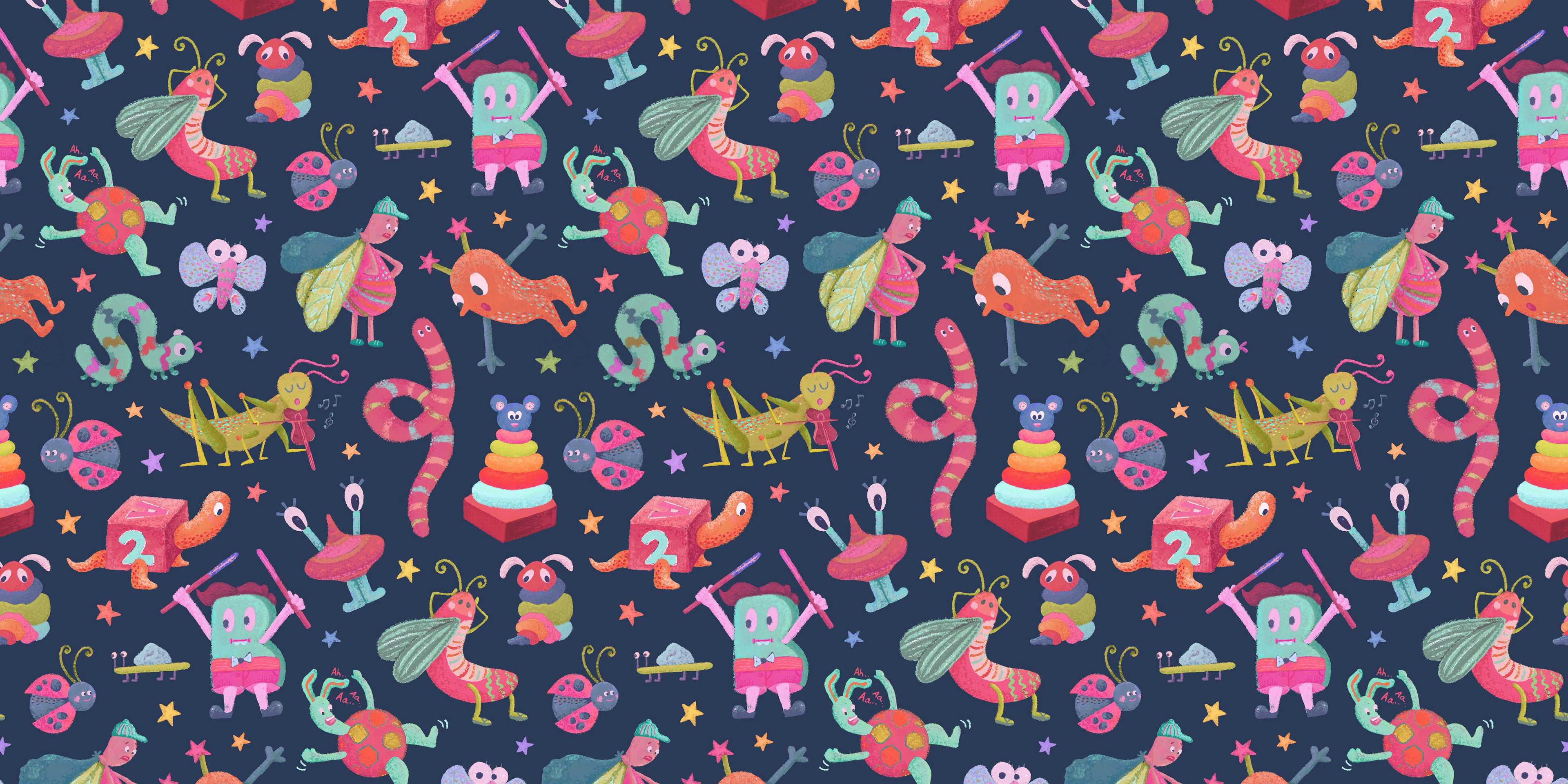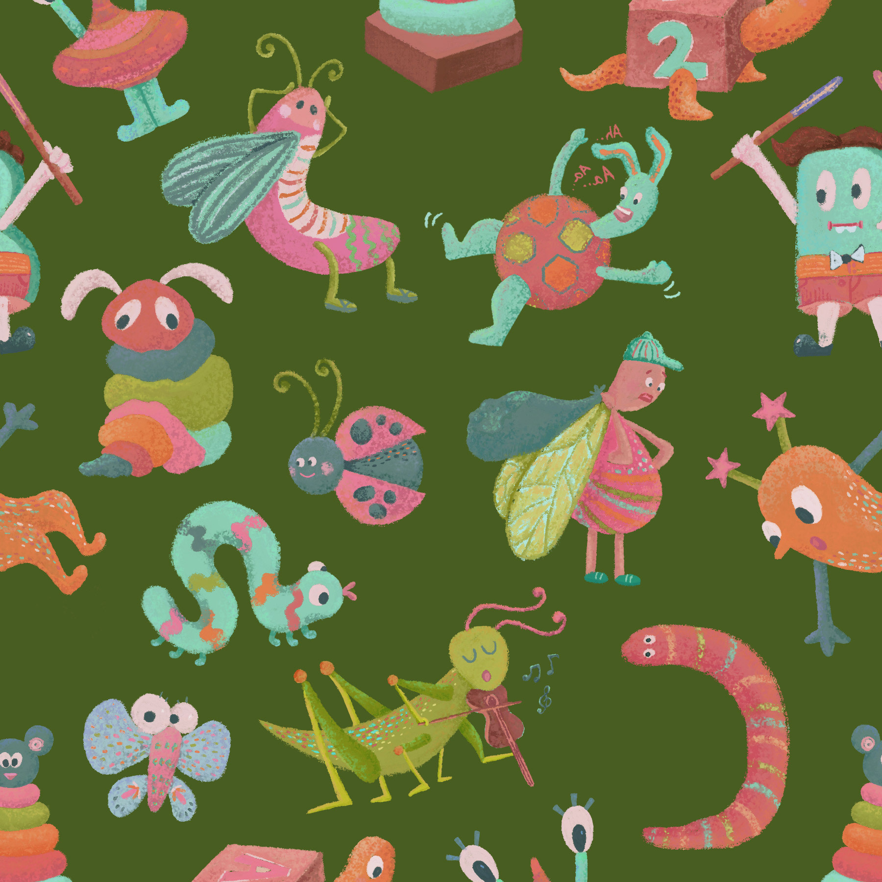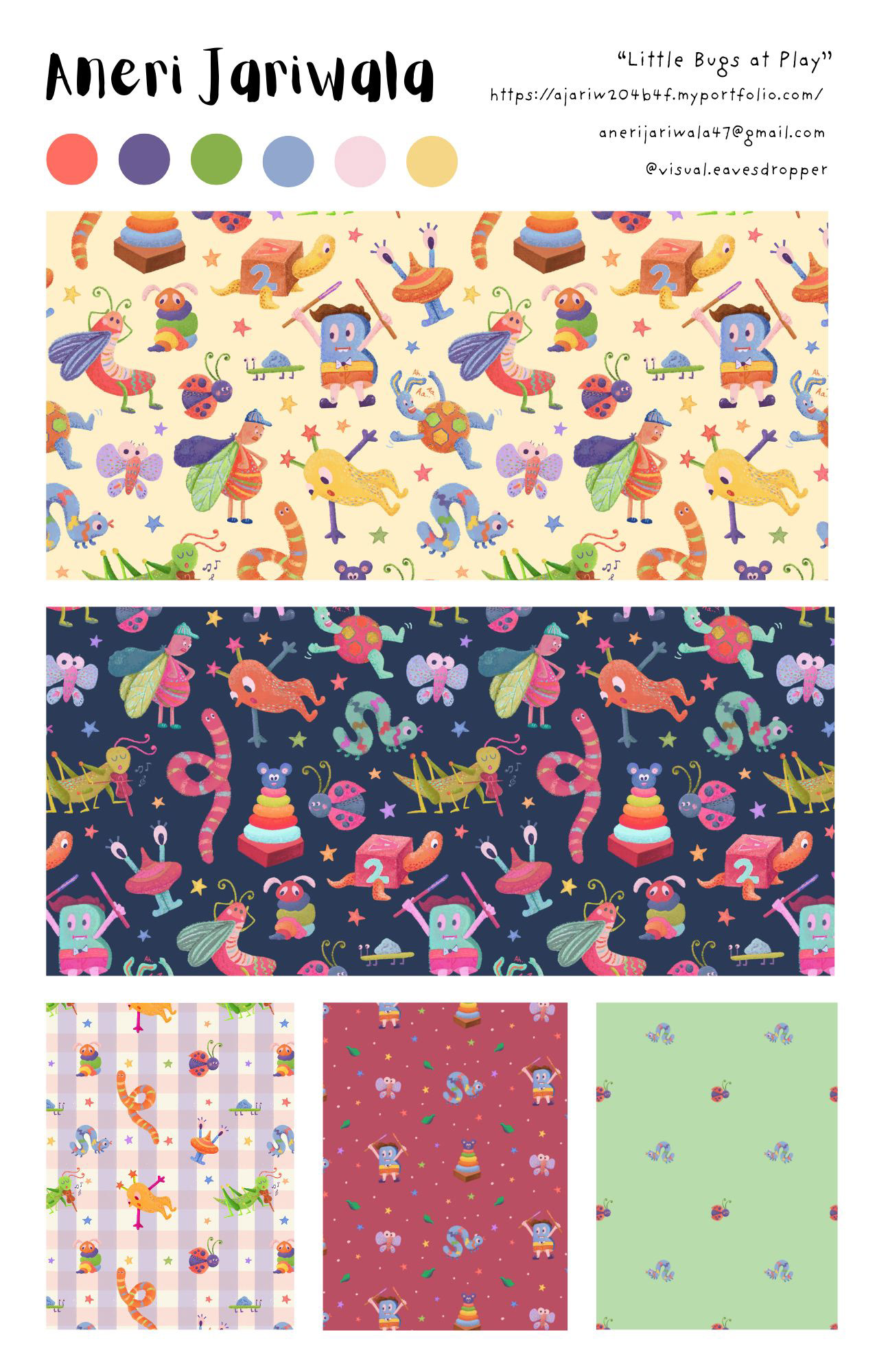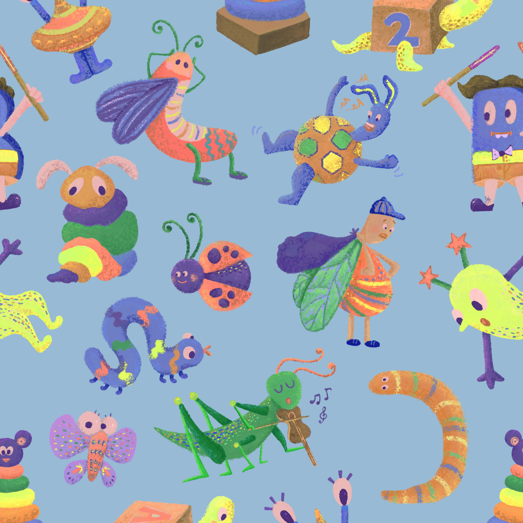 After exploring trend forecasts on WGSN, I noticed a growing shift toward playful, elongated characters. That insight led me to create a collection of whimsical bug motifs with a subtle yet lively color palette. The goal was to tap into the spirit of children’s imagination, letting each creature feel curious, expressive, and a little bit magical.