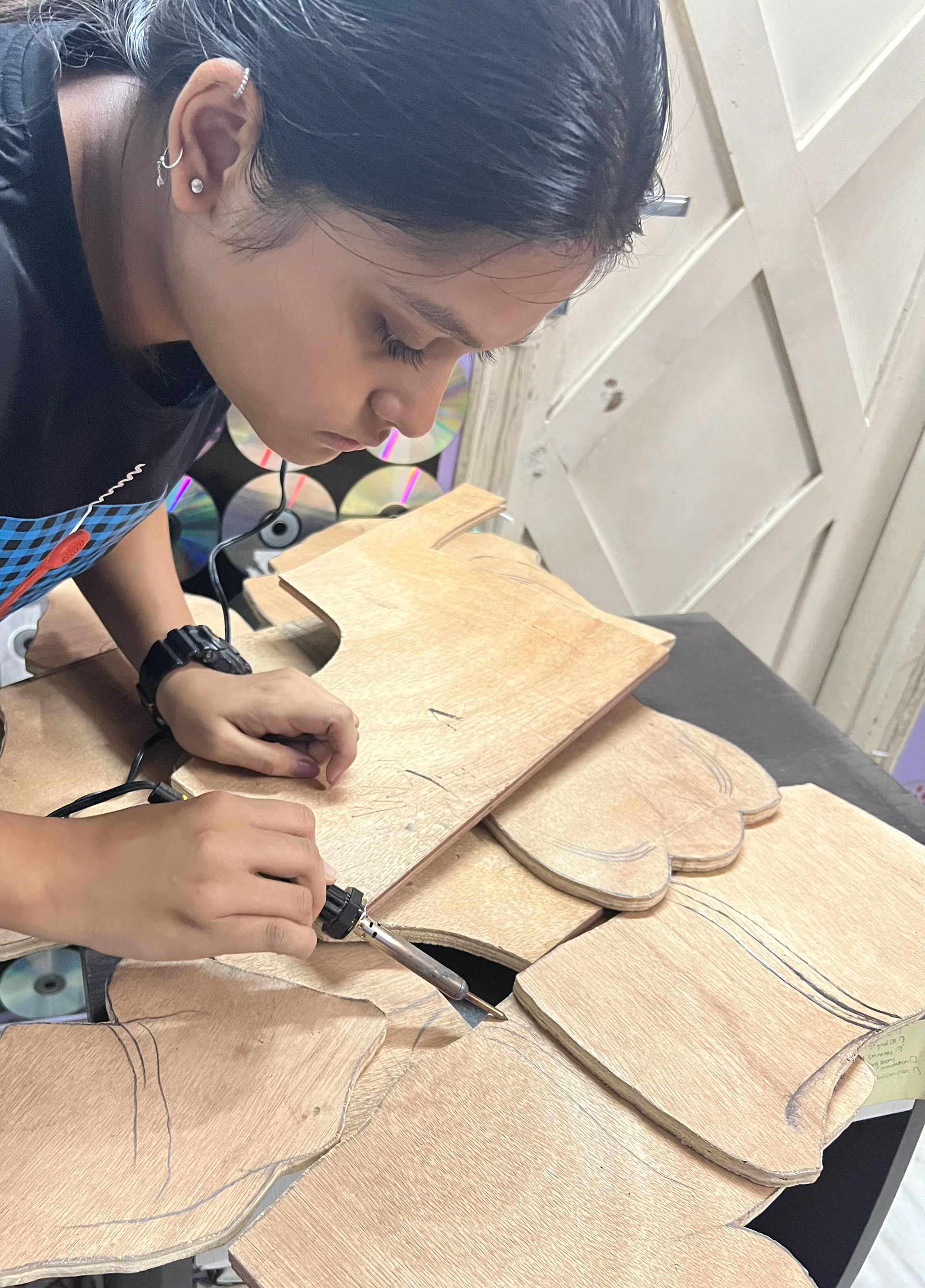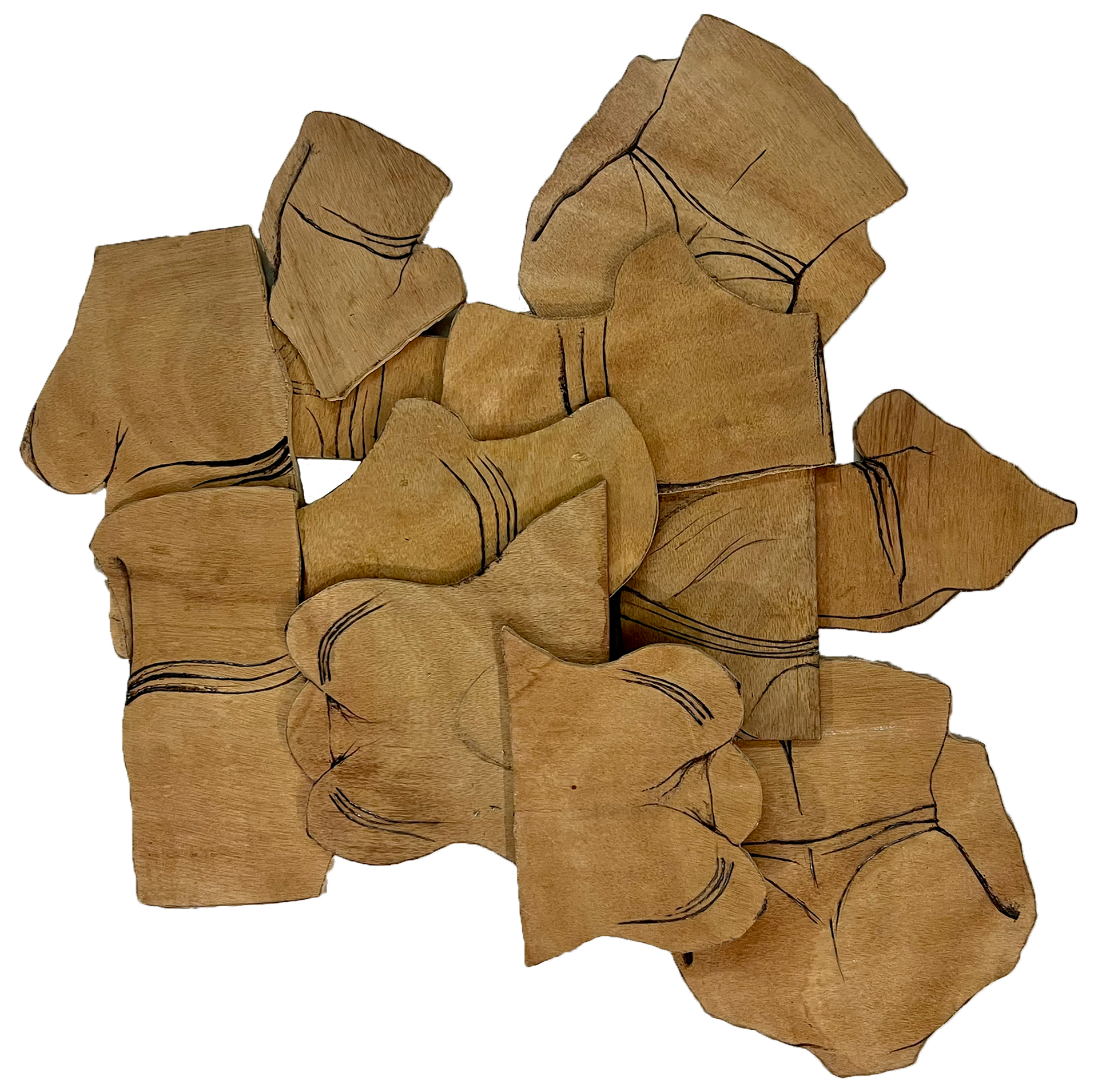 Media: 3d plywood cutout, pyrography