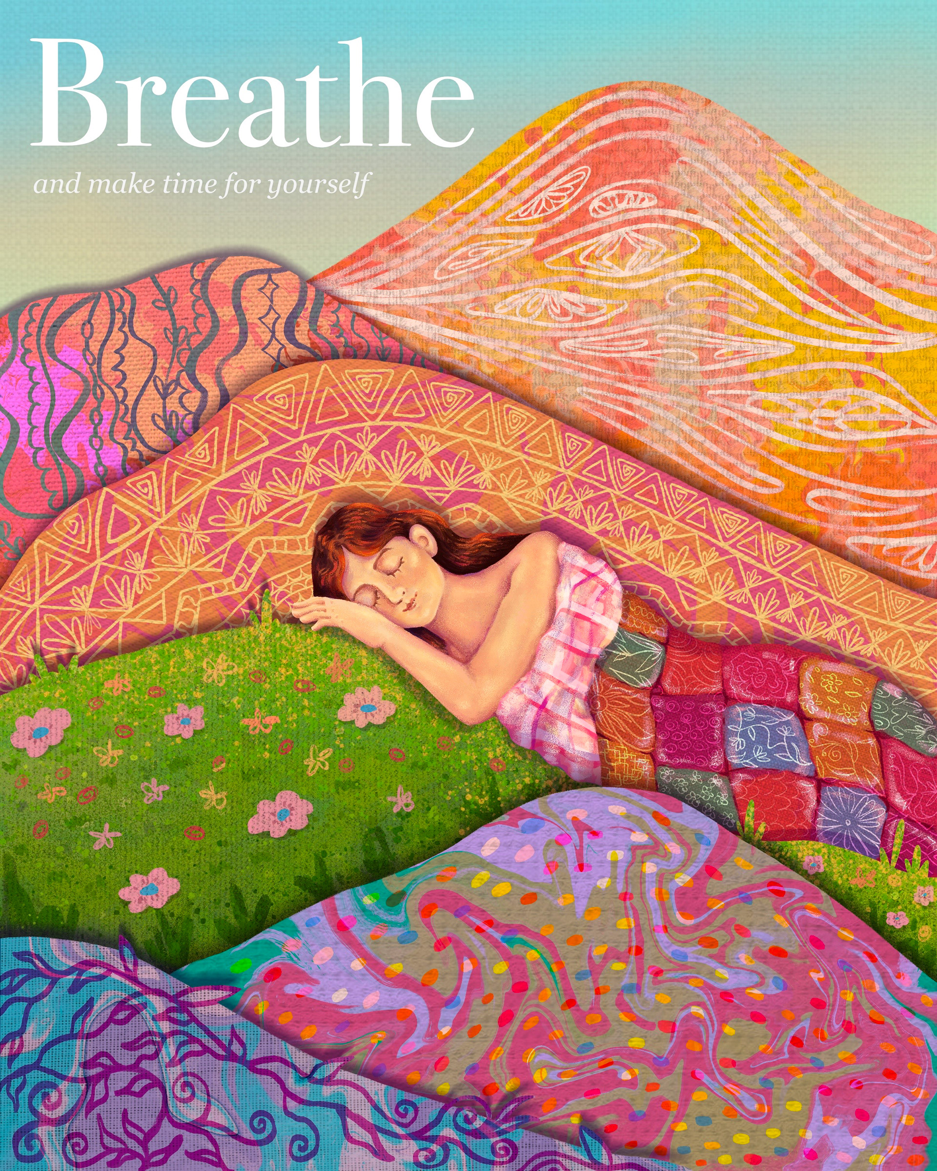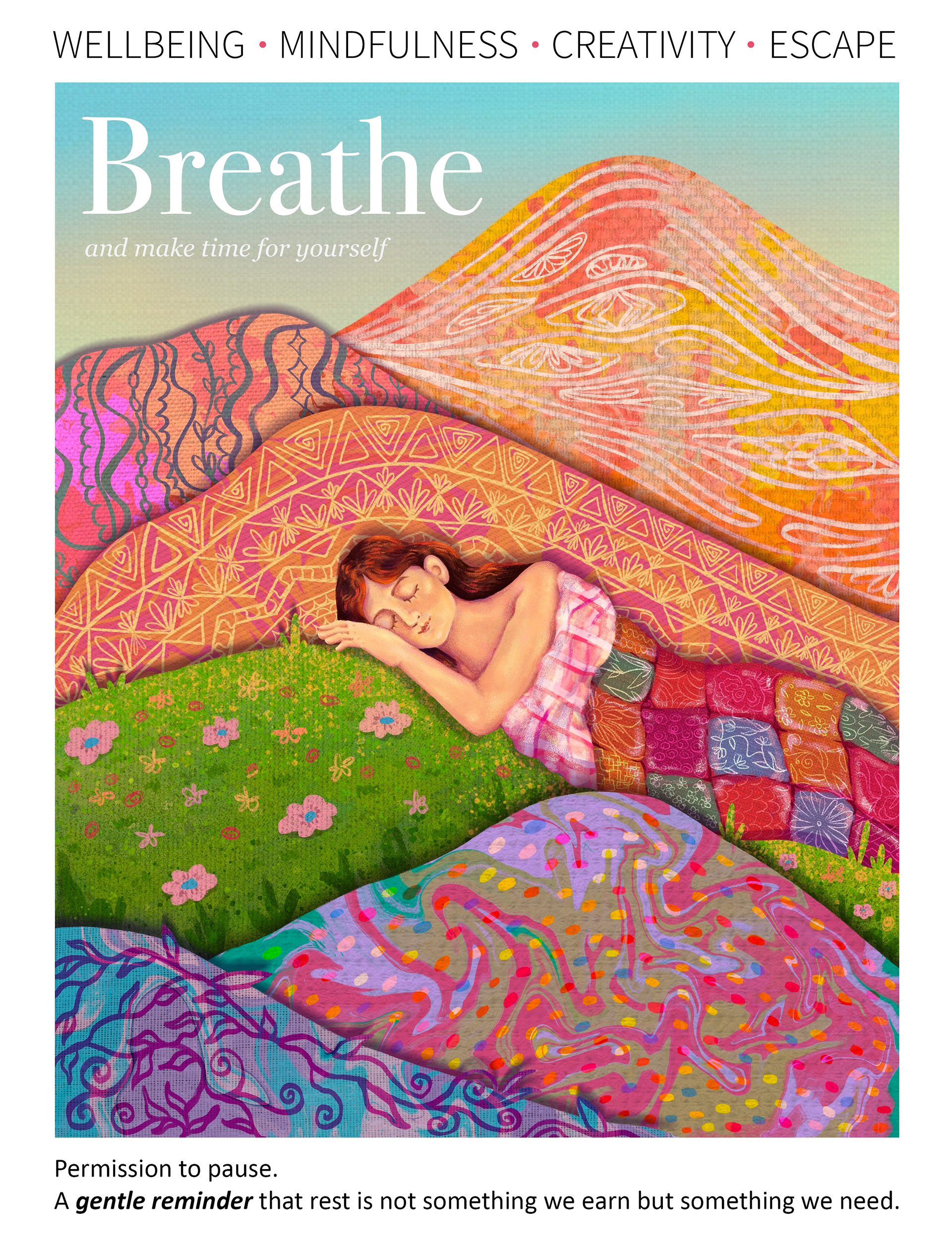 An editorial illustration for Breathe Magazine titled Permission to Pause, exploring the quiet guilt around rest and reframing it as something essential rather than indulgent. The concept aligns with the magazine’s focus on mindfulness and intentional living, inviting readers to slow down and reconnect with themselves.